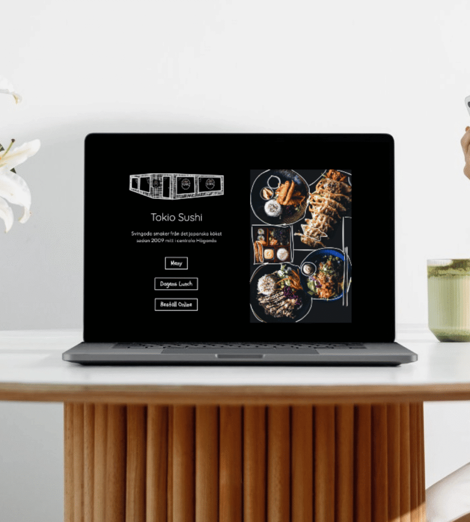 Vi skapade en mer välkomnade landningsida där vi på ett tydligare sätt lyfte fram Tokio Sushis olika försäljningsställen. Samt ändrade den grafiska profilen genom på ett kreativt sätt skapa en röd tråd mellan text och bilder på sidan. Vi sökmotoroptimerade även hela webbplatsen för att kunna fånga upp kunder över ett större geografiskt område.
